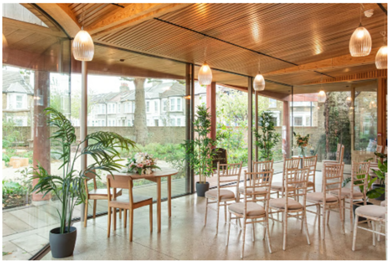 The room opens onto beautiful gardens, offering a serene and stylish setting for ceremonies and celebrations. Whether you're planning an intimate gathering or a larger event, Lea Bridge Café provides a welcoming and versatile space to make your day truly special.